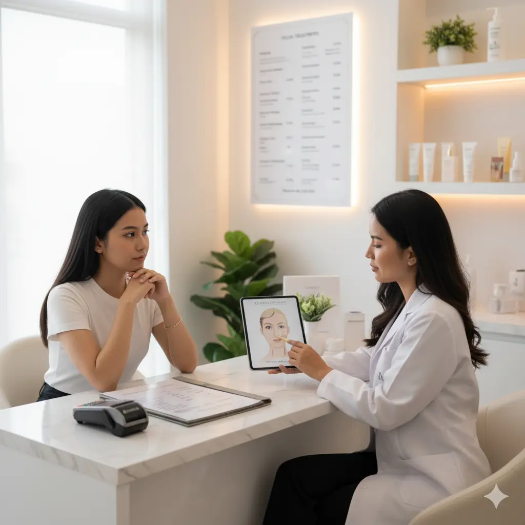 Biaya konsultasi dengan dokter kecantikan umumnya mulai dari Rp199.000, tergantung pada faktor seperti reputasi dokter, lokasi klinik, dan layanan spesifik yang dibahas selama konsultasi. Klinik biasanya menyediakan informasi harga yang transparan, namun total biaya dapat meningkat jika memilih perawatan khusus atau dokter yang lebih berpengalaman. Memastikan klinik menggunakan produk yang aman dan terdaftar BPOM sangat penting untuk keamanan klien. Informasi lebih lanjut mengenai biaya perawatan wajah, jenis-jenis klinik, dan pilihan asuransi tersedia di bawah ini.